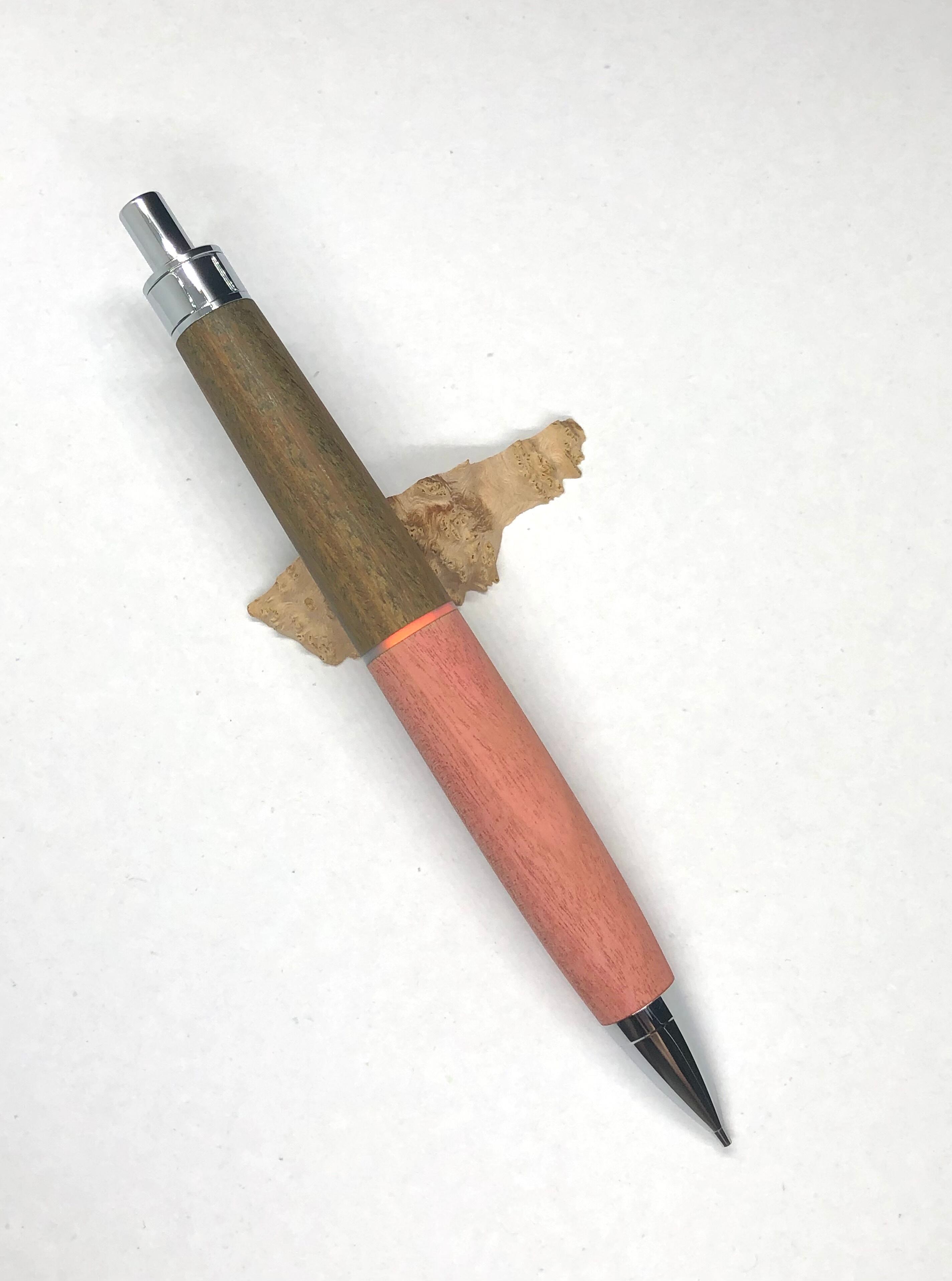 ピンクアイボリーとパロサントで桜餅をイメージした寄木風のペンです。