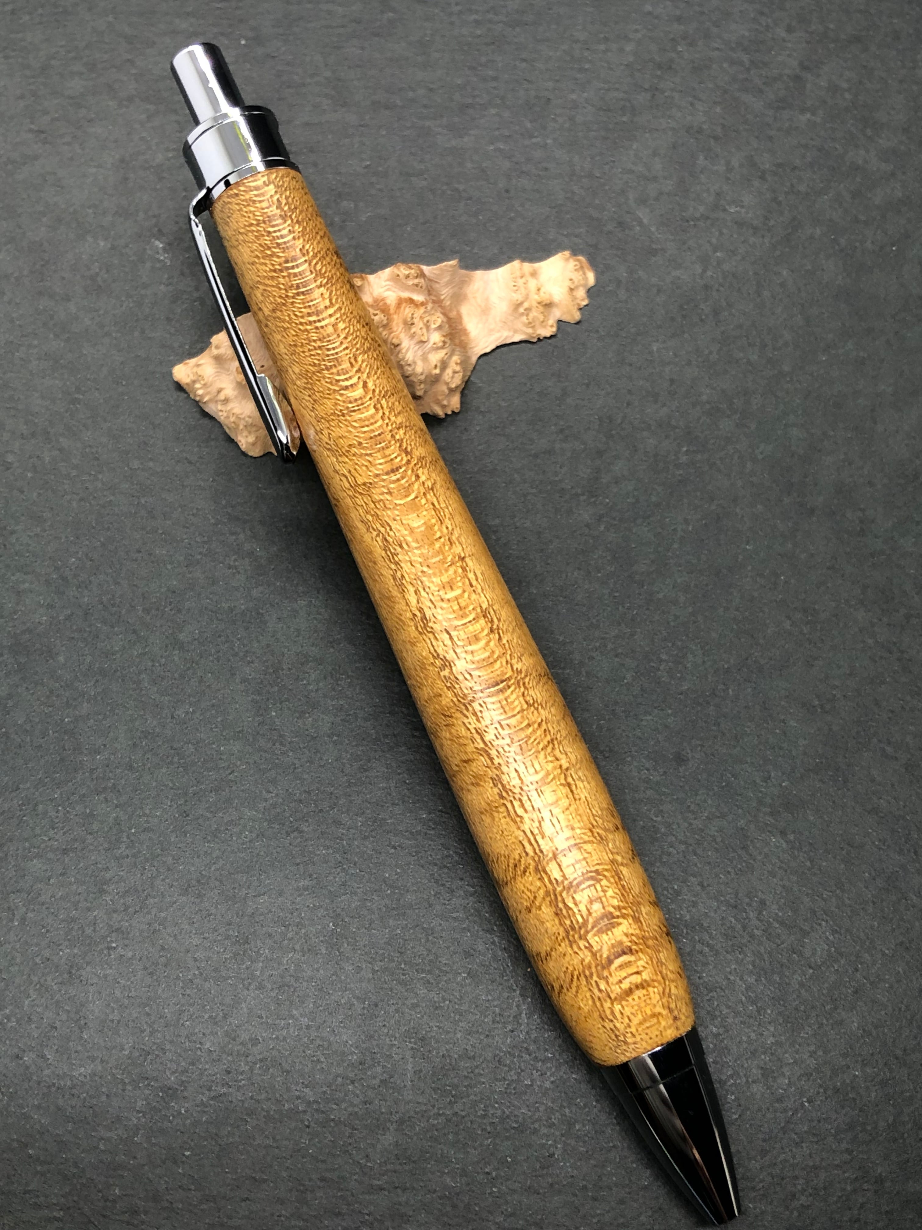 木肌がキラキラと煌めく御蔵島桑(ミクラジマクワ)で制作したボールペンです。