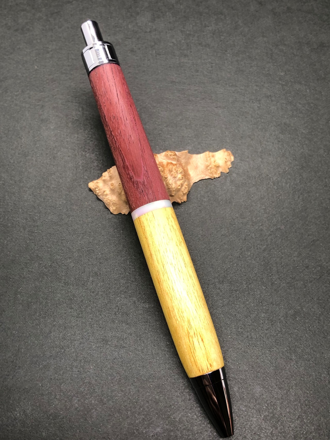 パープルハートと黄櫨(ハゼ)を使い、自然の色を活かした焼き芋をイメージしたペンです。