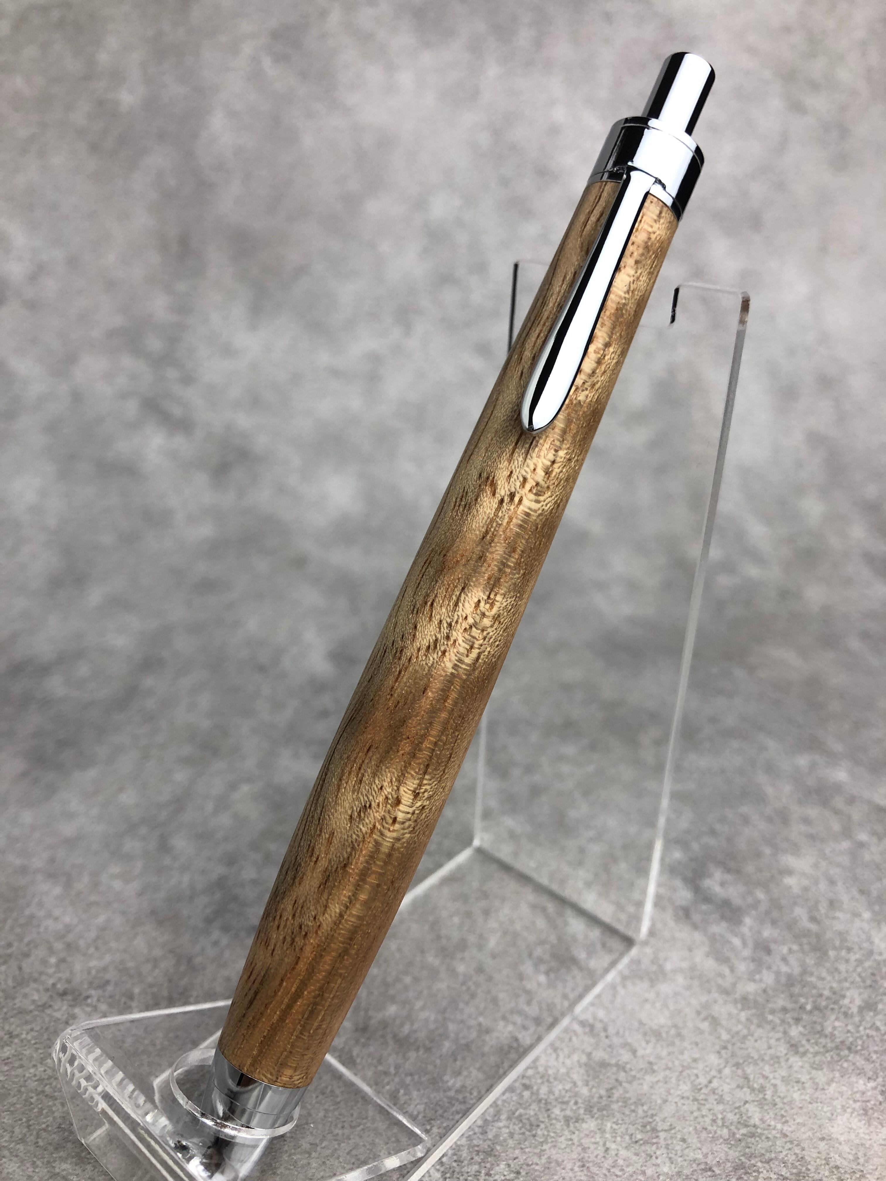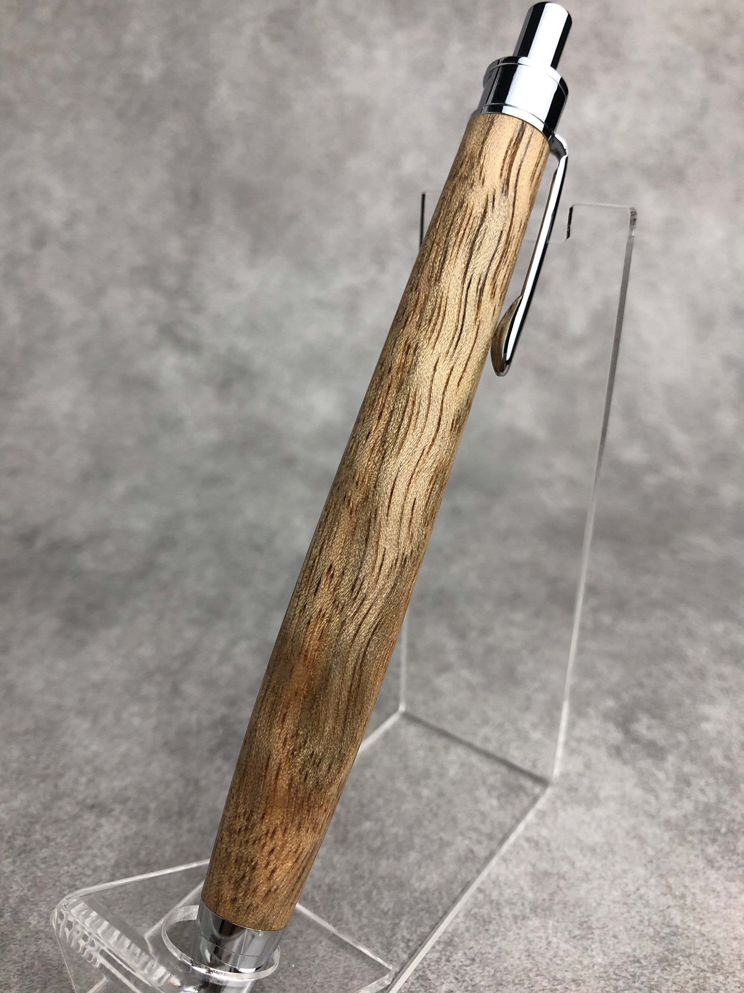 全体に大柄な縮杢が出たダオから制作したボールペンです。シャンパンゴールドのような色で、杢によってキラキラしているため、非常にゴージャスな雰囲気です。