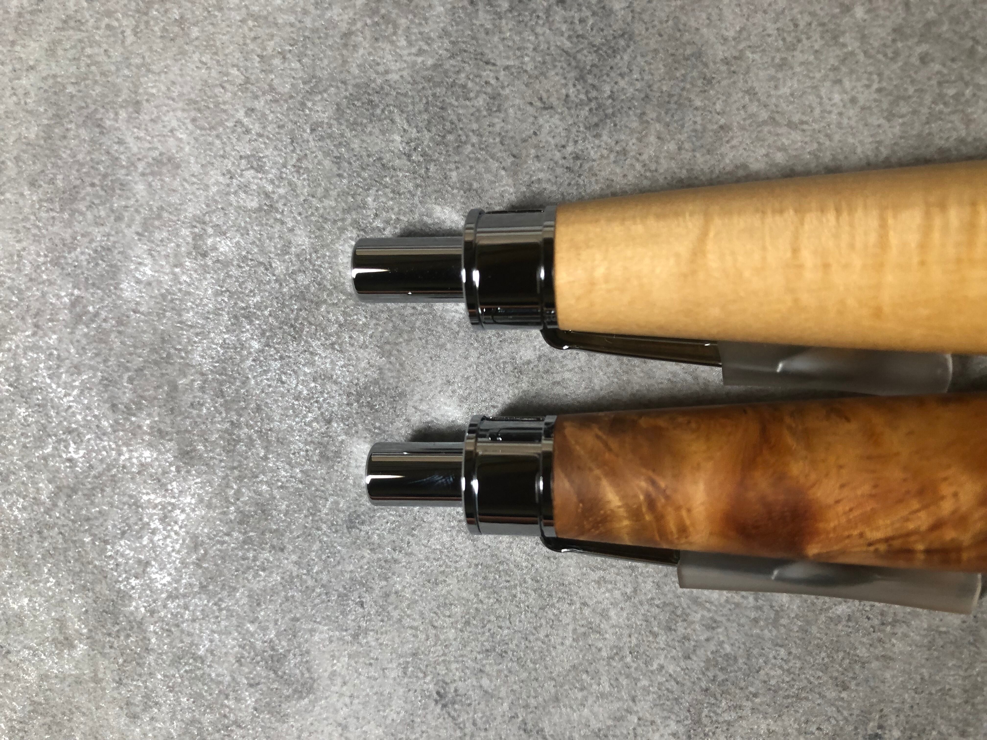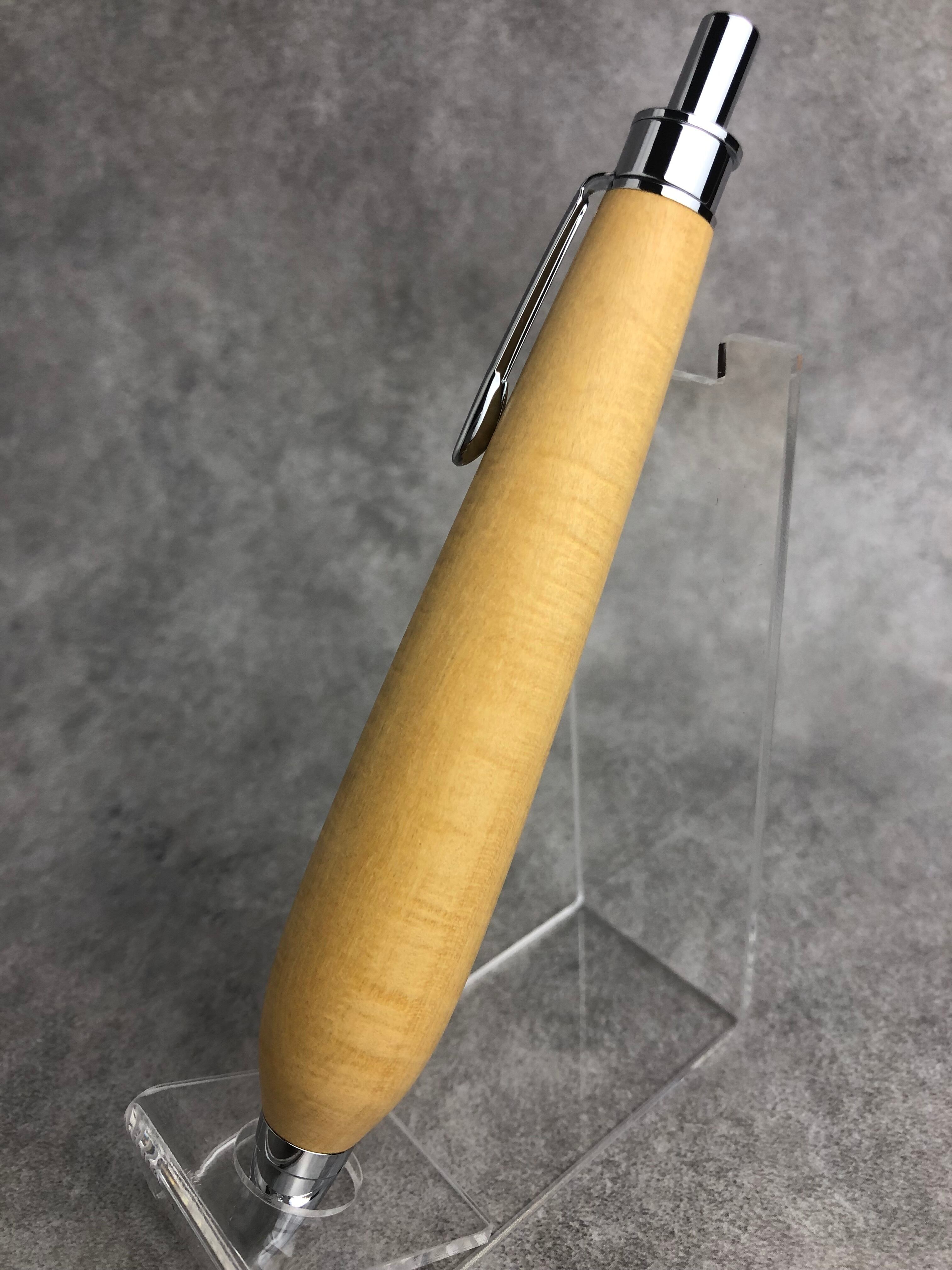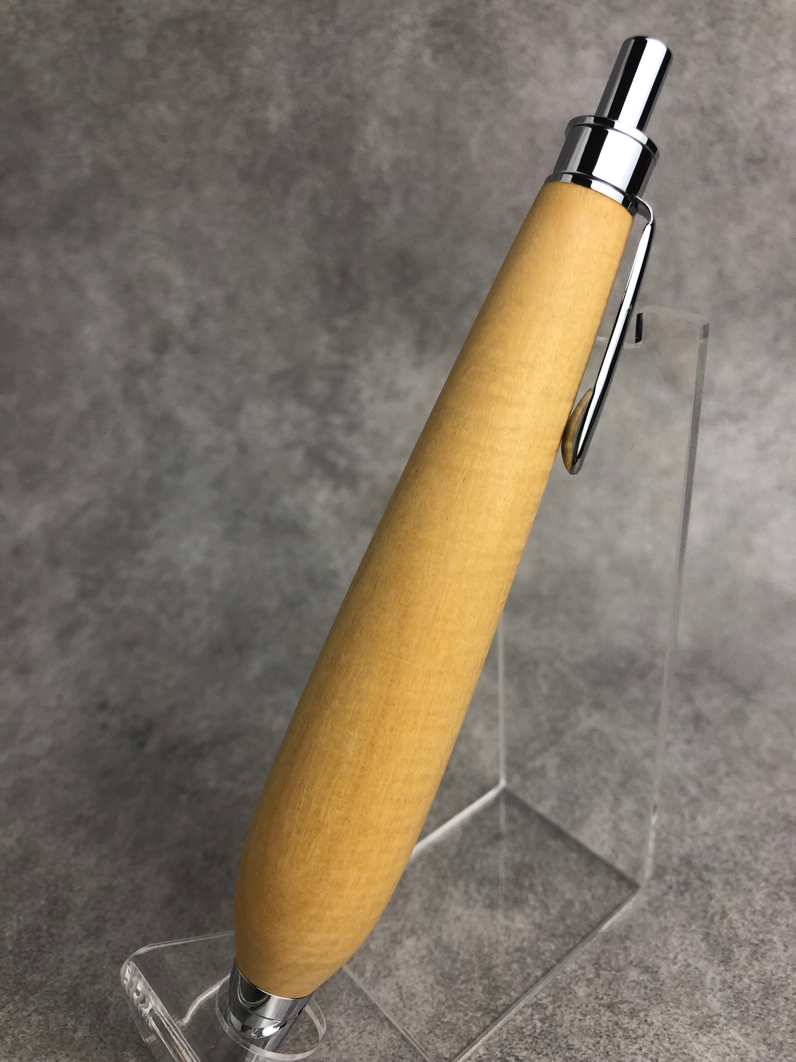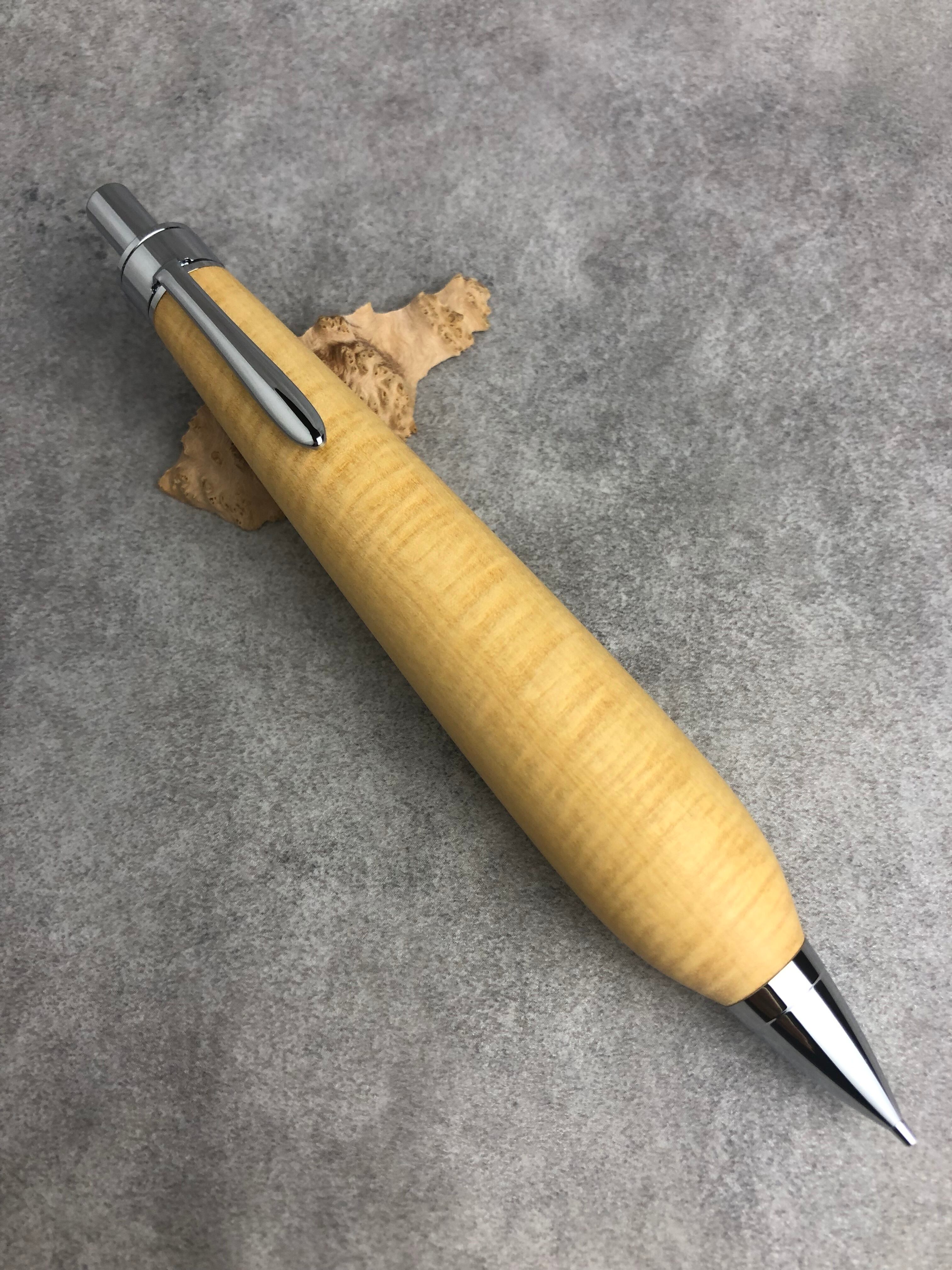 細かい縮杢が入ったアマレロから制作した、極太軸のシャープペンシルです。
