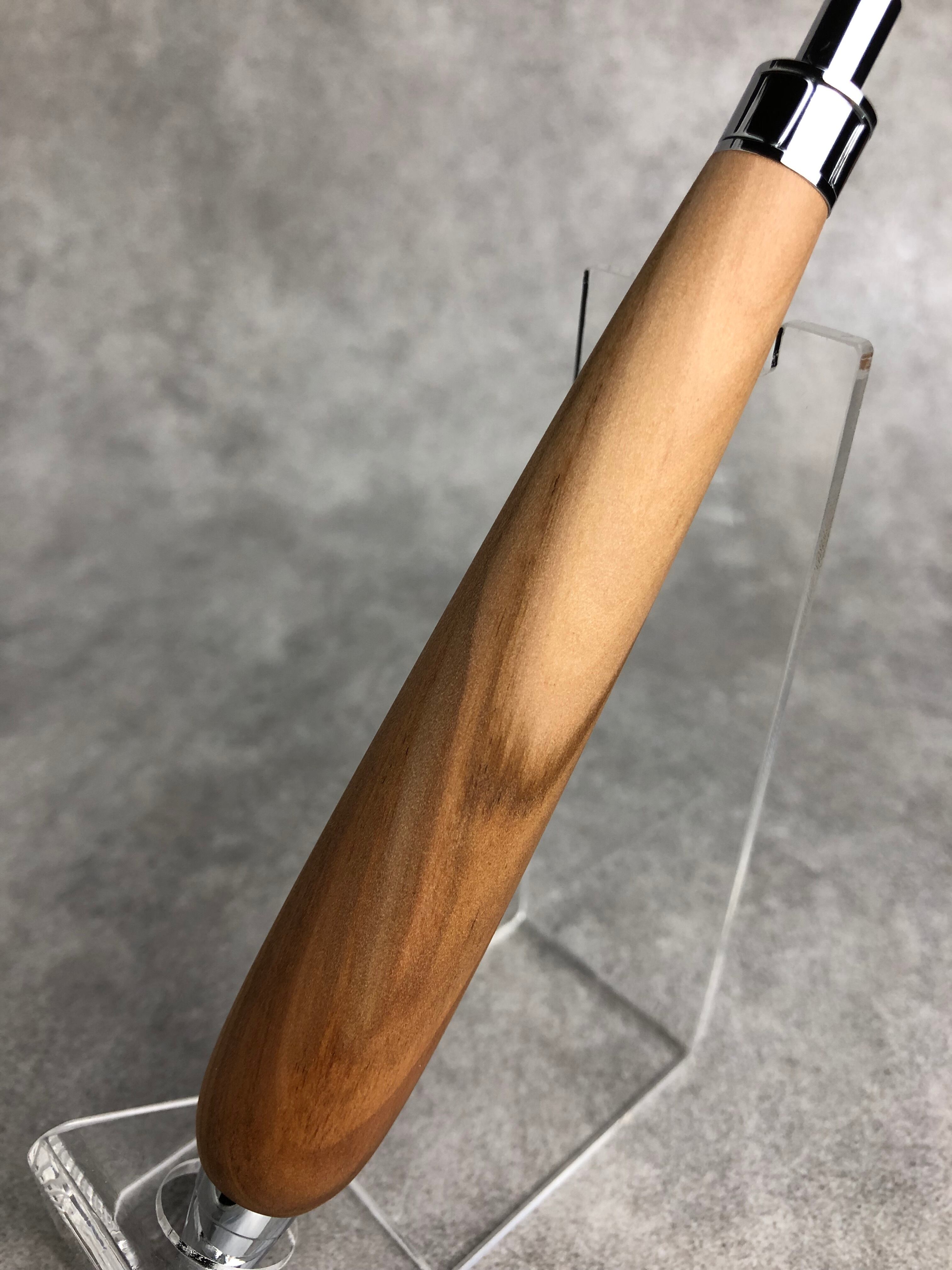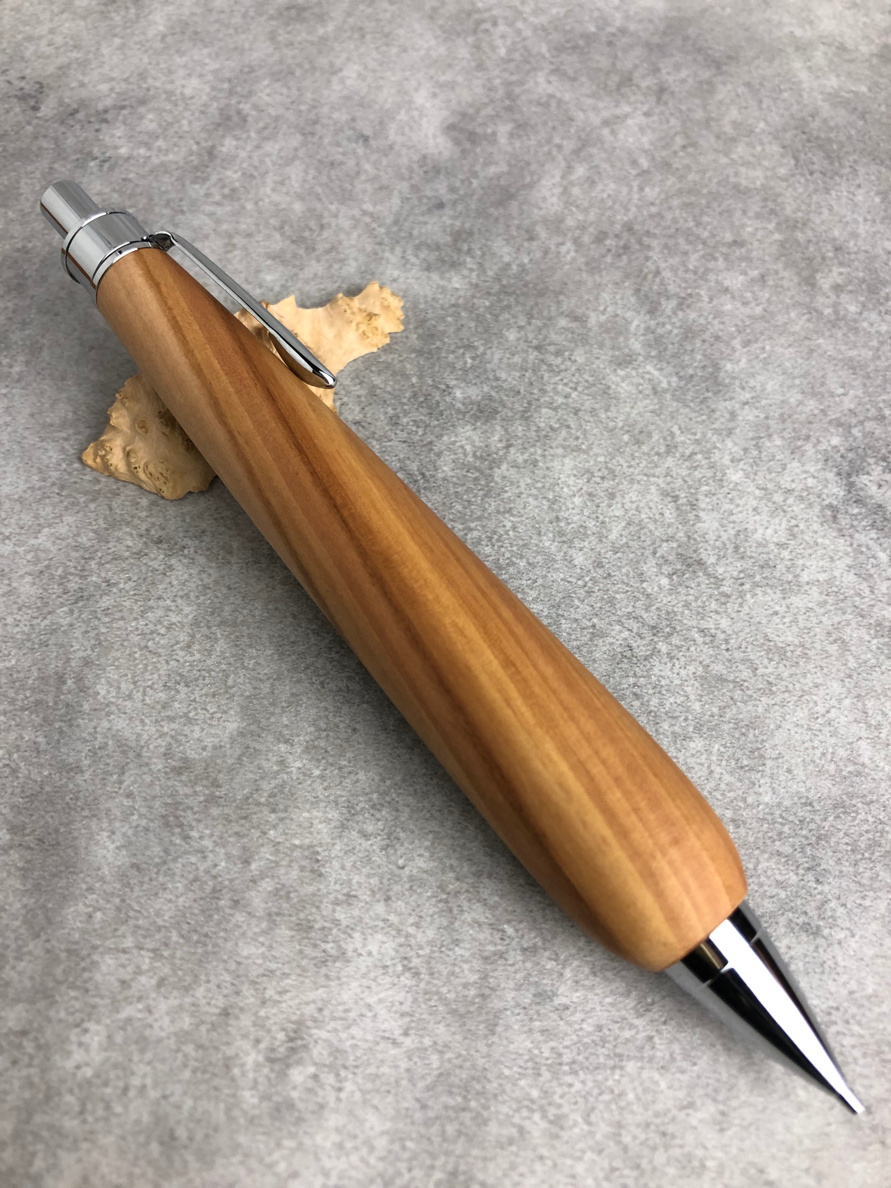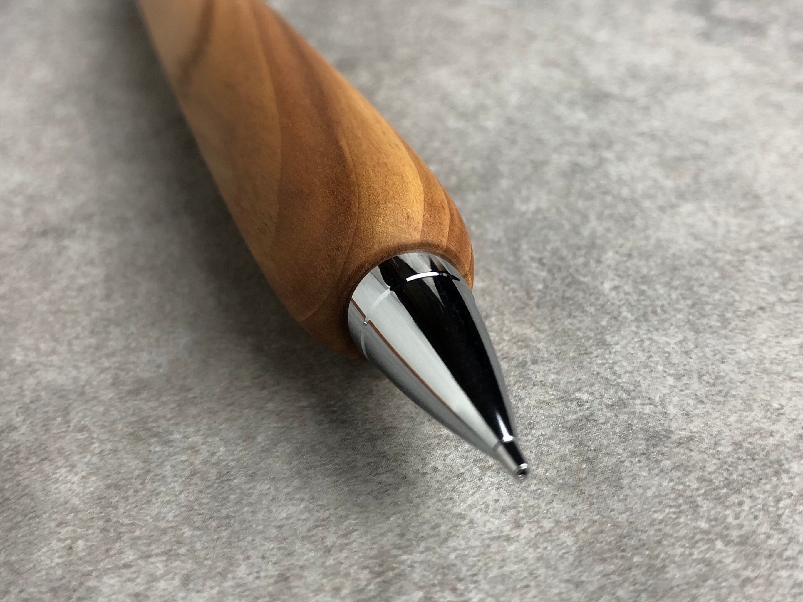 白太の入った、多様な色味を含むりんご材から制作した極太軸のシャープペンシルです。