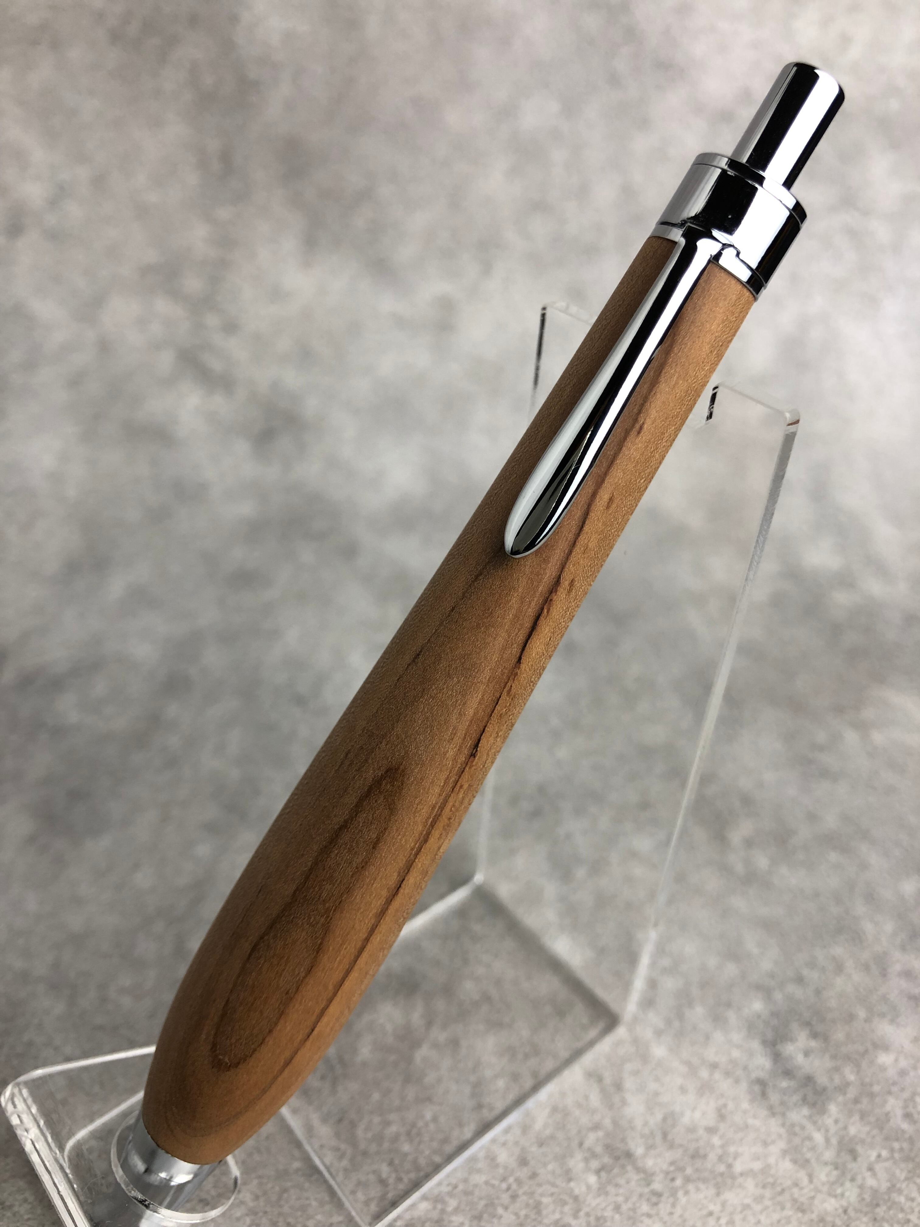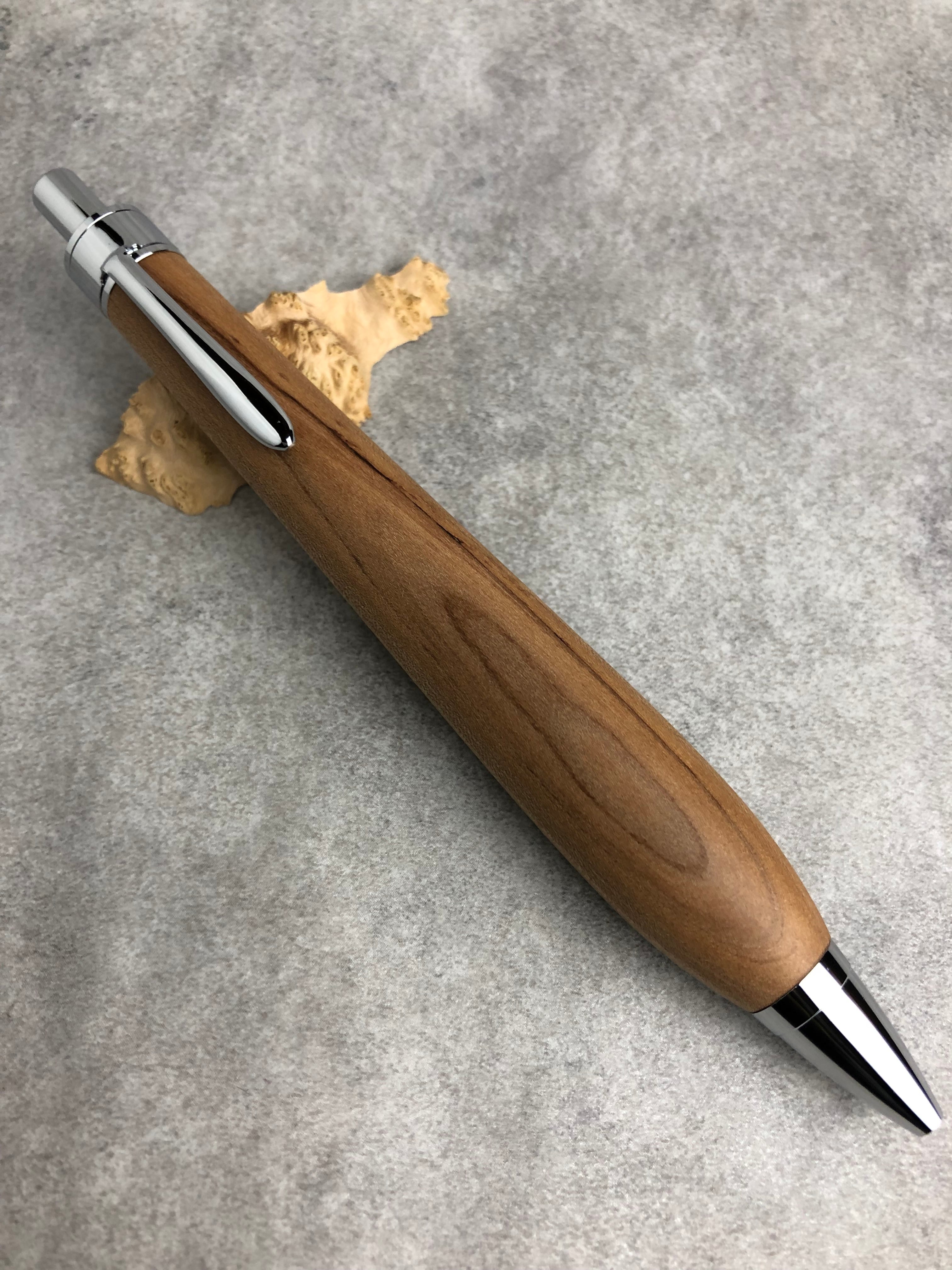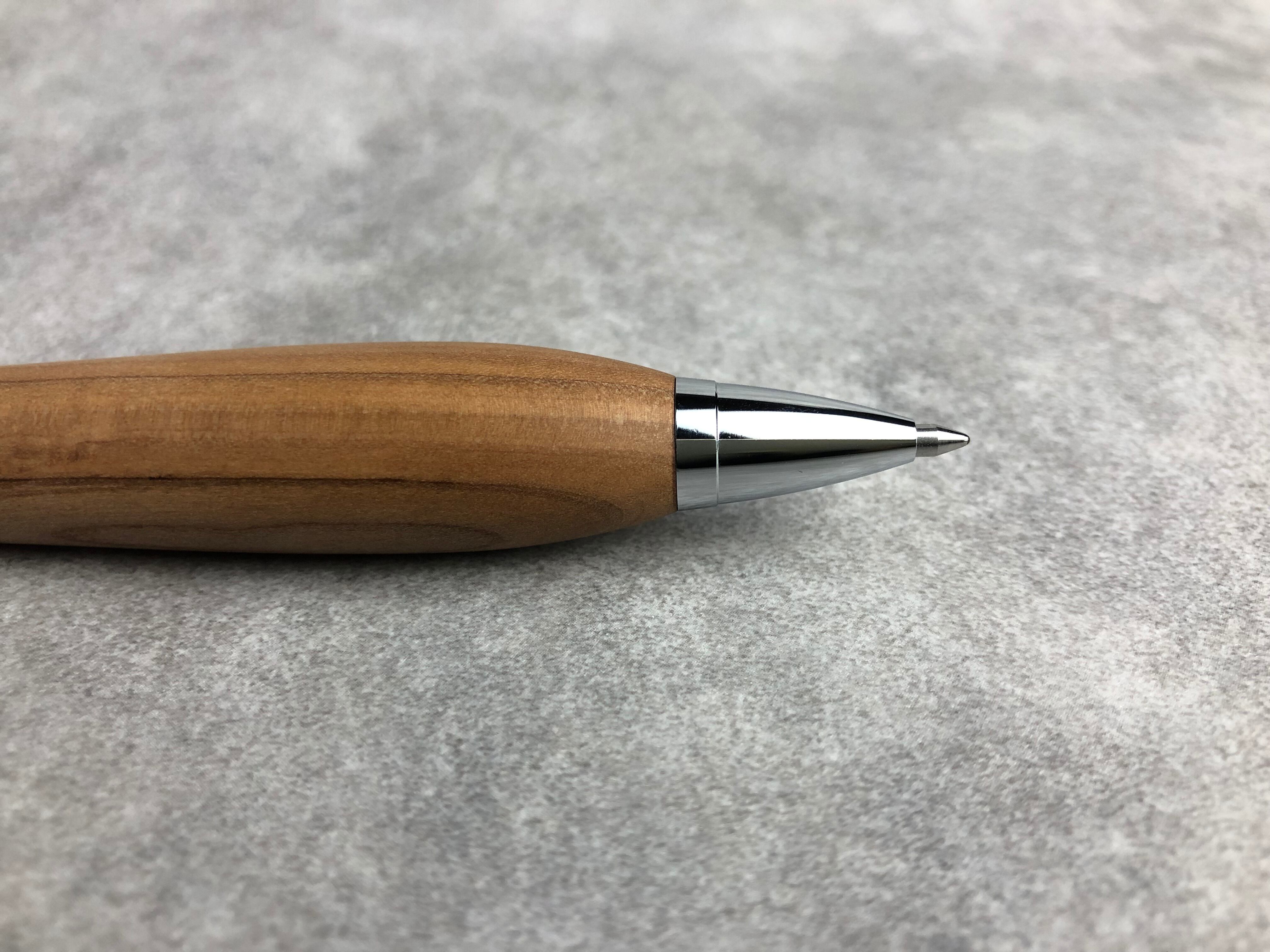 幸水という品種の梨の木から制作した極太軸のボールペンです。緻密な材なので、サラサラ、スベスベな極上の手触りです。
